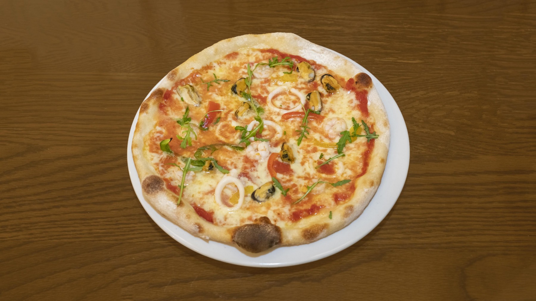 £13.90Tomato base, mozzarella, Italian air cured beef finely sliced topped with rocket leaves salad & parmesan flakes